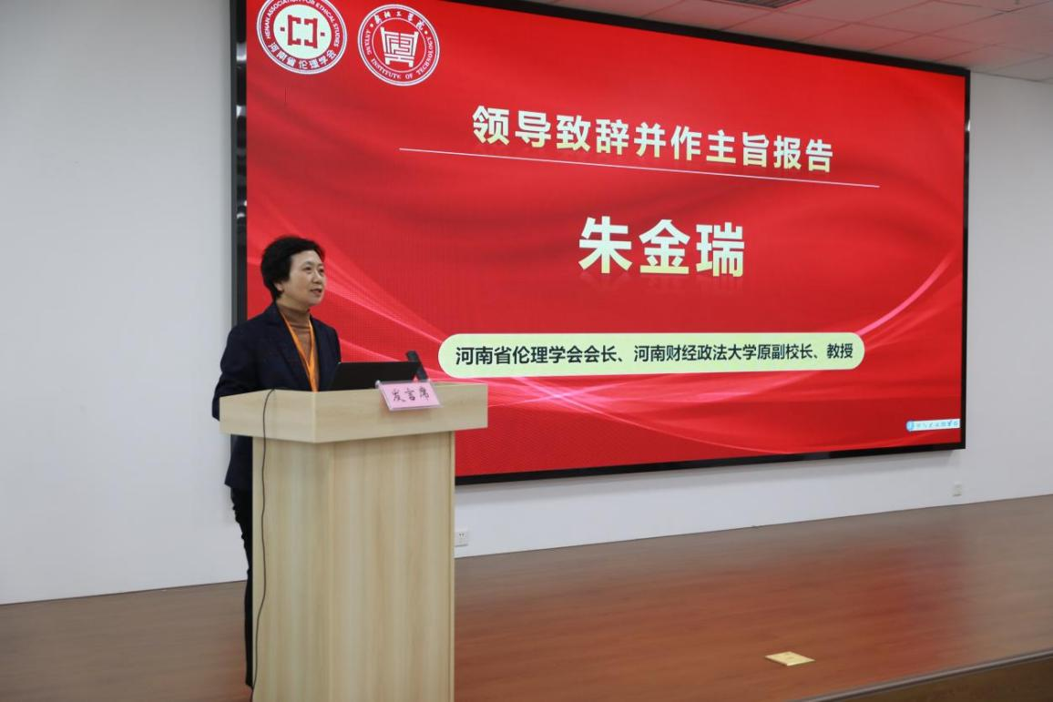 河南省伦理学会会长、河南财经政法大学原副校长朱金瑞致辞并作主旨报告