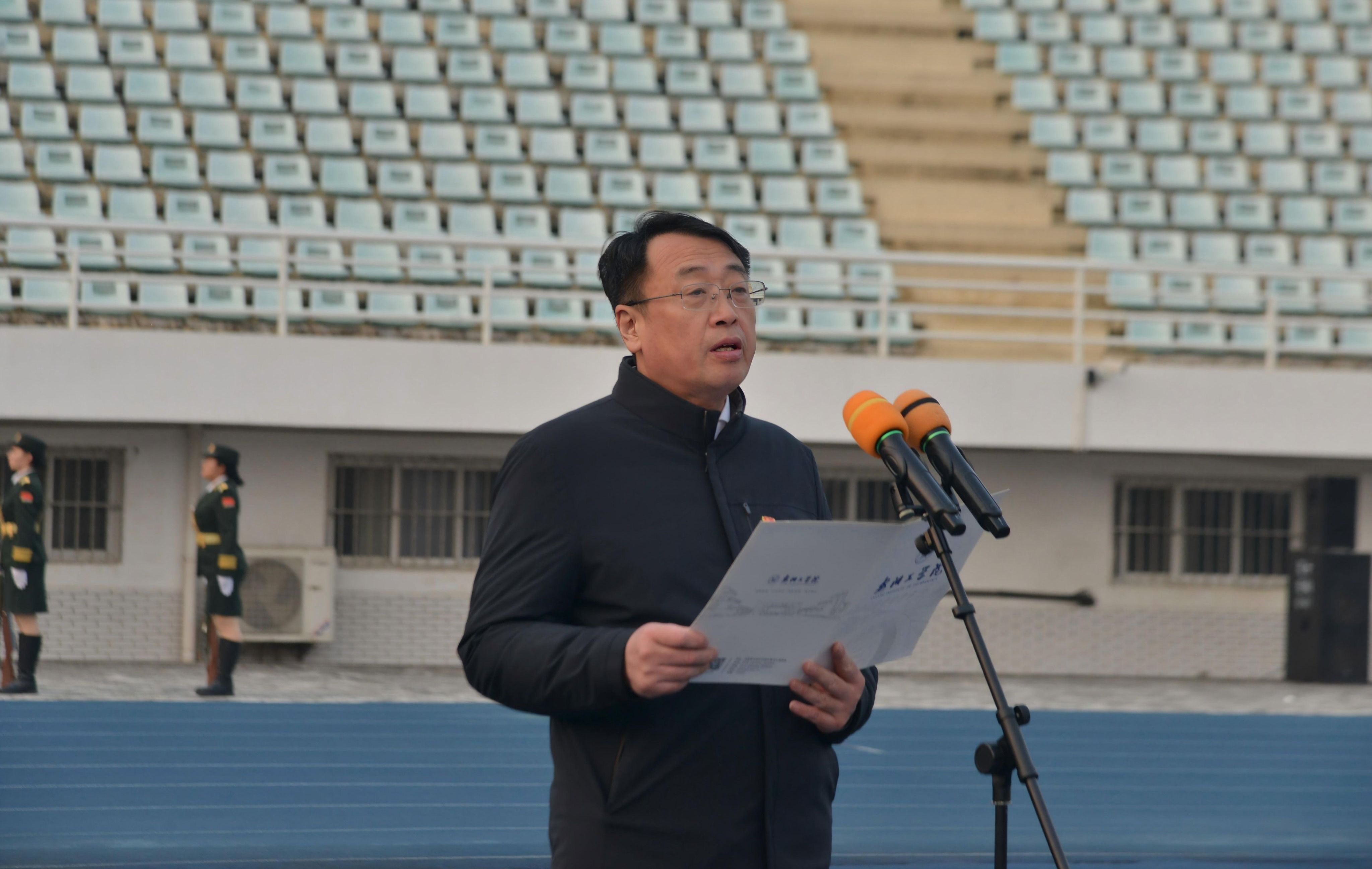 升旗仪式上,校长沈记全讲授开学第一课。他代表学校向全体师生致以新学期的问候与祝福,回顾学校过去一年在教学科研、人才培养、社会服务等方面取得的丰硕成果。学校新增国家级一流本科课程2门,国家级科研平台1个,获省自然科学奖二等奖1项、省科技进步奖二等奖1项,全国高校教师教学创新大赛一等奖1项,2个专业顺利完成工程教育认证专家入校考察,学生获全国大学生挑战杯、中国国际大学生创新大赛等省级及以上奖项1731项,考研录取率、毕业生去向落实率稳步提升,彰显了教育教学改革取得的成效。